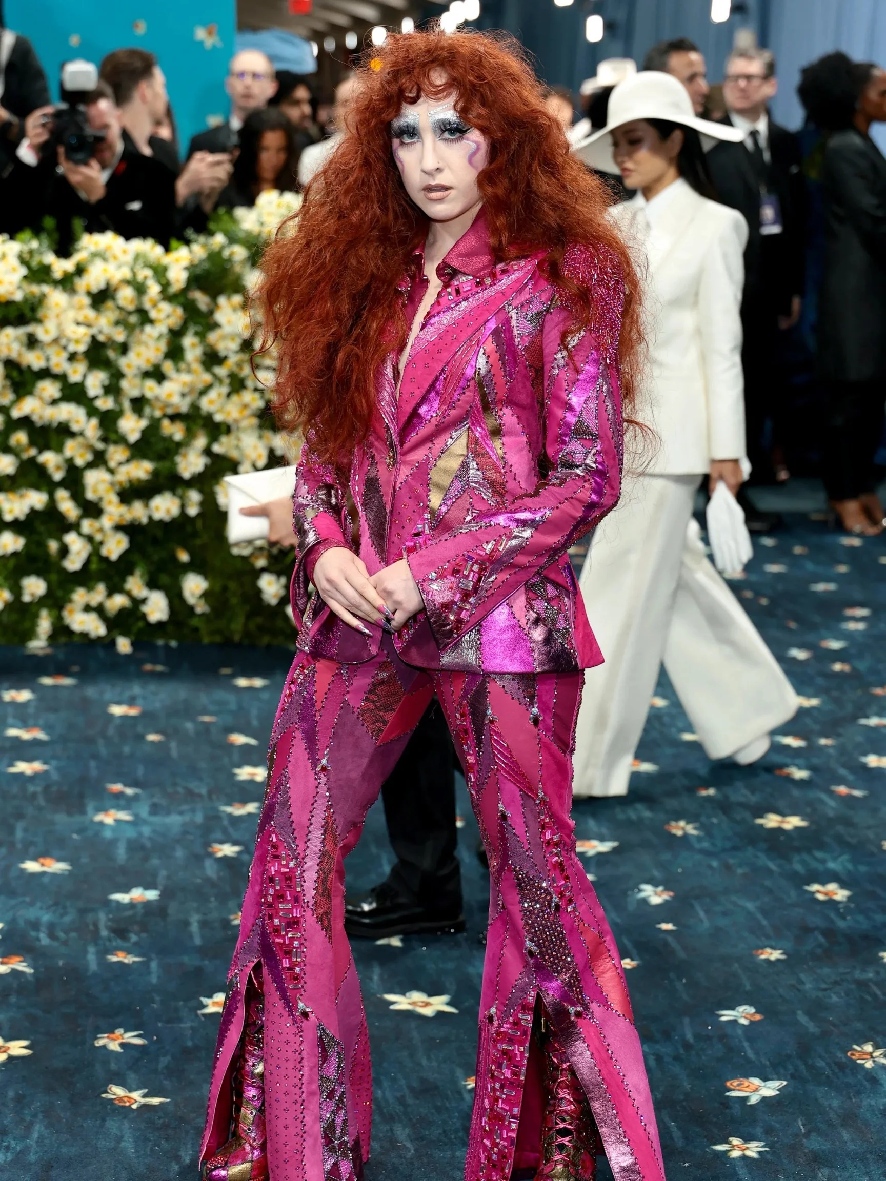 Chappell Roan a fait ses débuts au Met Gala dans un ensemble conçu en collaboration avec le costumier Paul Tazewell et entièrement sourcé sur eBay, rendant hommage à l'ère disco et au tailoring flamboyant.